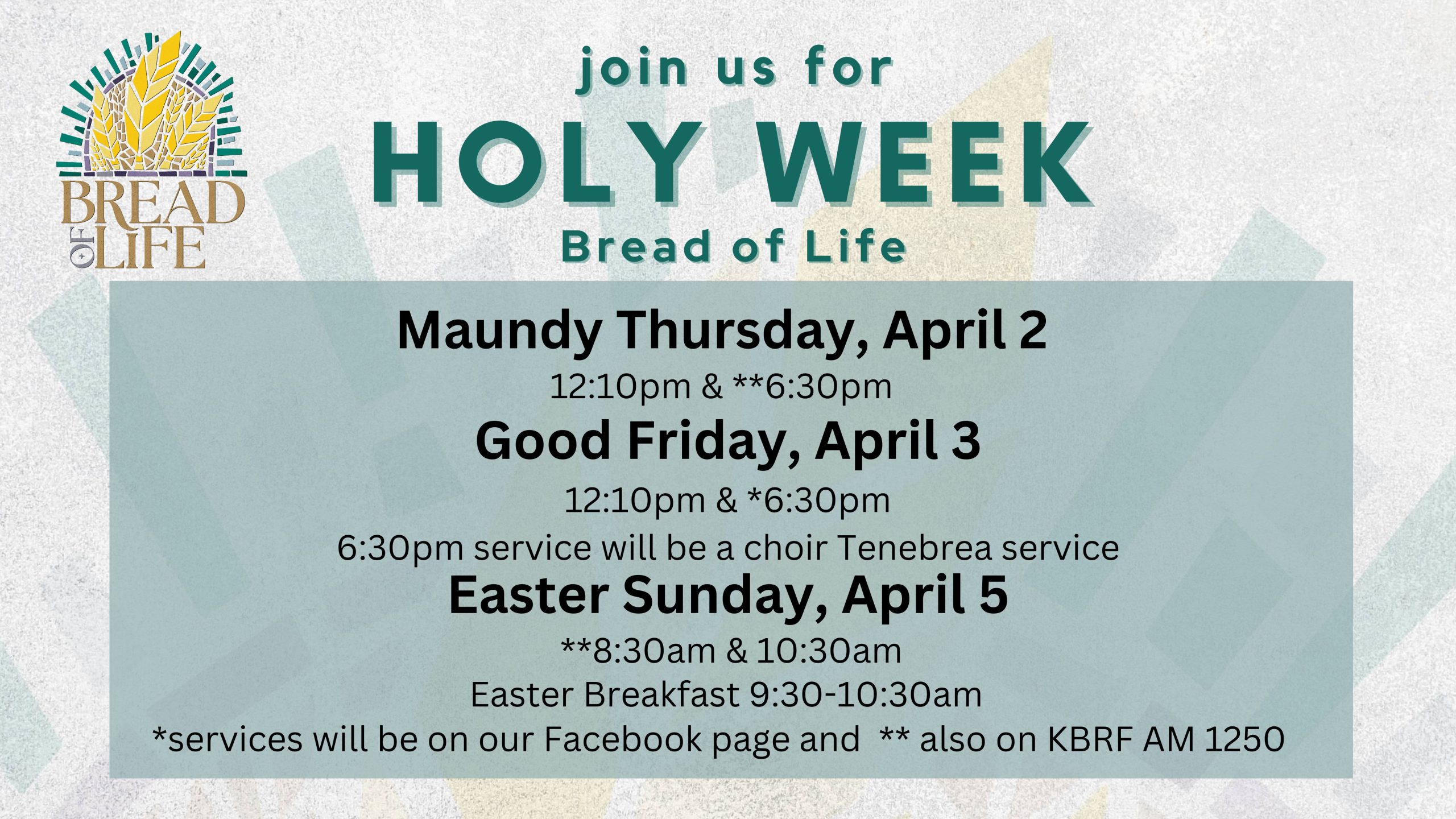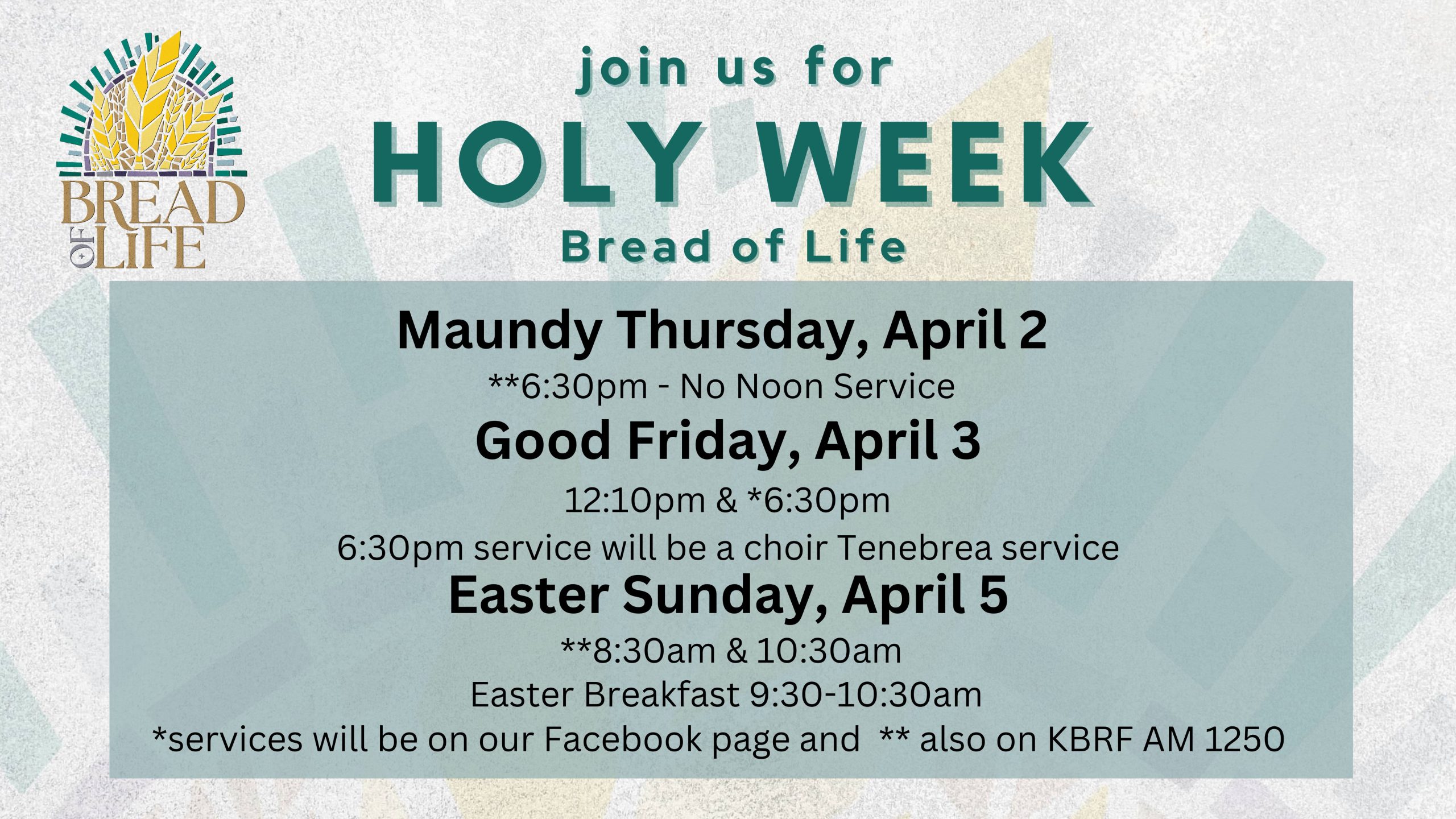 We will center our worship and learning on the theme: Bread of Life. In these moments while many search for a way forward, the bread of life reminds us of Jesus’ abundance. There is enough love, grace, and hope for all. Bread of Life highlights how Jesus fed people – not just their bodies but their souls – with good news, redemption, and stories of God’s kingdom.